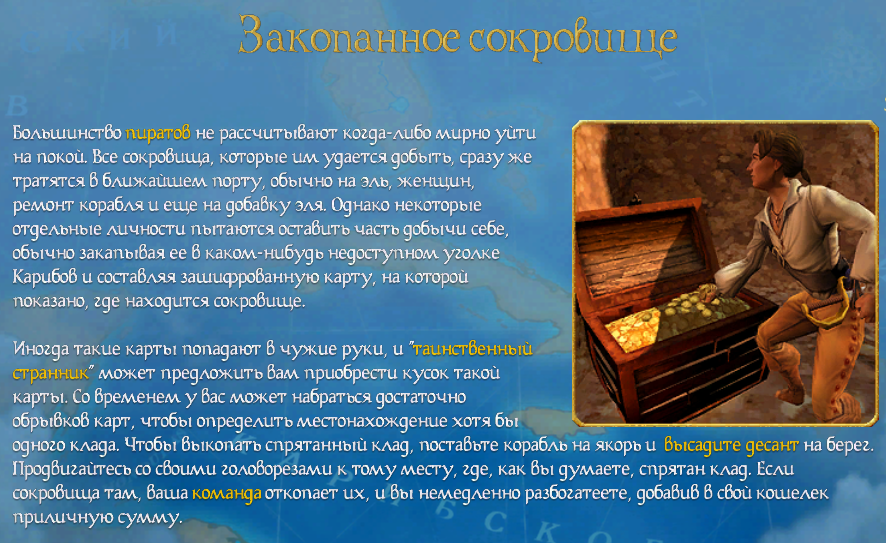 Не так давно я написал несколько статей про Sid Meier's Pirates, в которых забыл не осветил такую важную (пусть и выдуманную) деталь жизни каждого пирата (естественно, внутриигрового), как закопанные сокровища.
