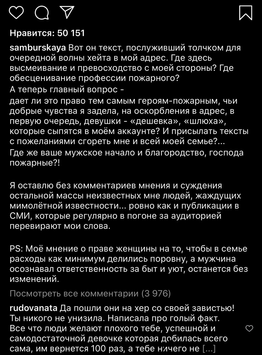 Девушку обвинили в меркантильности, а многие мужчины пожелали, чтобы её квартира сгорела.