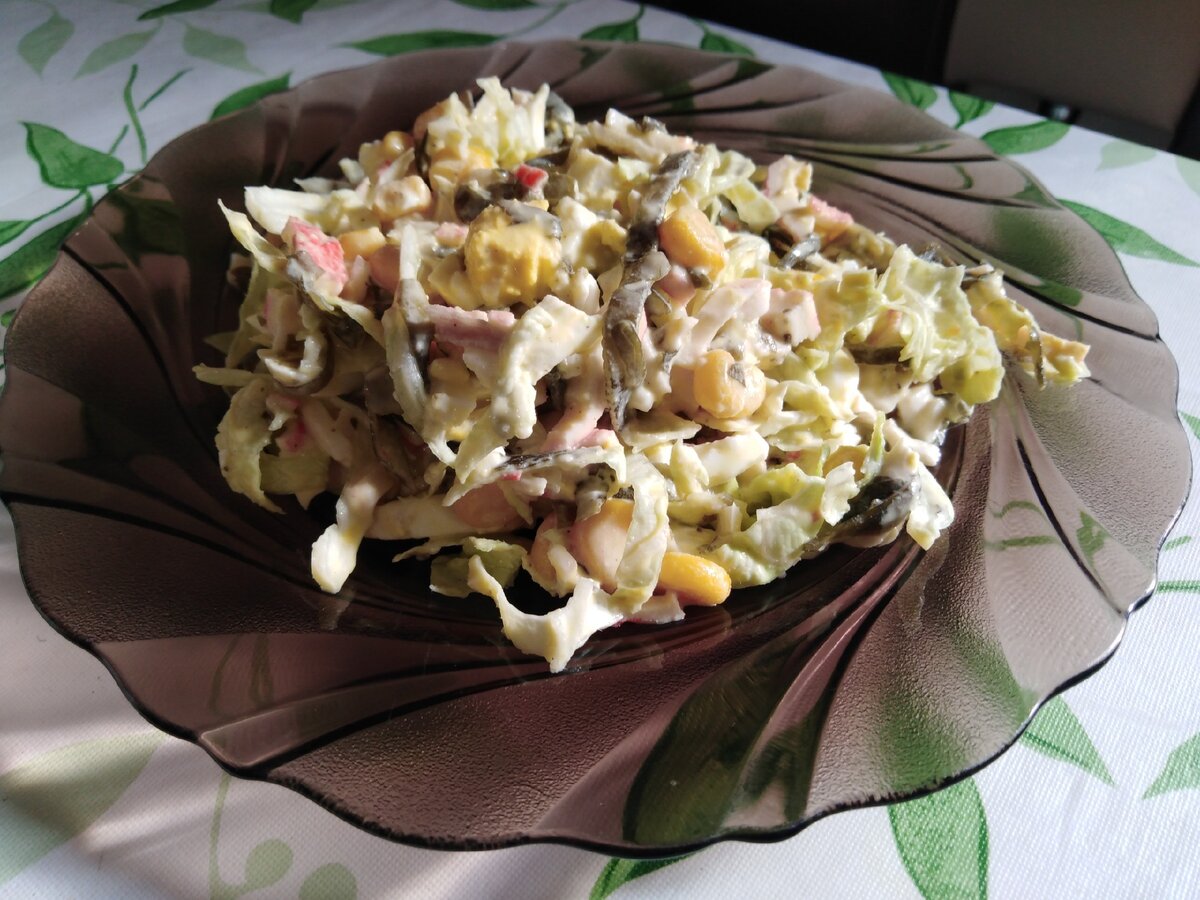 Доброго времени суток мои уважаемые читатели. Сегодня я хочу поделиться с вами вкусным, полезным и легким салатом, который научила меня готовить моя свекровь. Я никогда не любила морскую капусту и свекровь за это меня ругала, аргументируя, что это очень ценный продукт для нашего организма и в рационе семьи этот продукт должен быть обязательным. На что я махала рукой приговария :" и без него