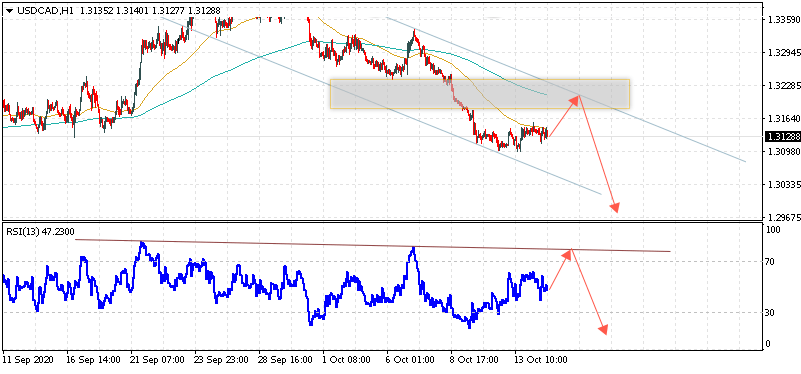 Дополнительным сигналом в пользу падения котировок Канадского Доллара выступит тест нисходящей линии тренда на индикаторе относительной силы. Вторым сигналом в пользу снижения станет отскок от нижней границы восходящего канала. Отменой варианта падения USD/CAD на Форекс станет сильный рост и пробой области 1.3255. Это укажет на пробой области сопротивления и продолжение роста котировок в область выше уровня 1.3465. Ожидать ускорения падения пары стоит с пробоем области поддержки и закрытием котировок пары USD/CAD ниже уровня 1.3065.Важных новостей из Канады, которые могут оказать влияние на курс пары USD/CAD, не ожидается, поэтому пара продолжит движение в рамках технического анализа.Таким образом, USD/CAD прогноз Канадский Доллар на 15 октября 2020 предполагает попытку теста области сопротивления вблизи уровня 1.3175. Далее, продолжение роста в область ниже уровня 1.2965. Дополнительным сигналом в пользу снижения Канадского Доллара на Форекс выступит тест линии тренда на индикаторе относительной силы. Отменой варианта падения котировок USD/CAD станет сильный рост и пробой уровня 1.3255. Это укажет на продолжение подъёма стоимости актива с потенциальной целью выше уровня 1.3465.
