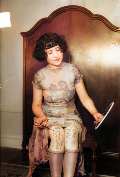 Знаете, это очень странный тренд 20-х годов. "Румяные" коленки, коленки с рисунками - некоторые блоггеры и вовсе ставят под сомнения, что такая мода была. Но я говорю вам: это правда.