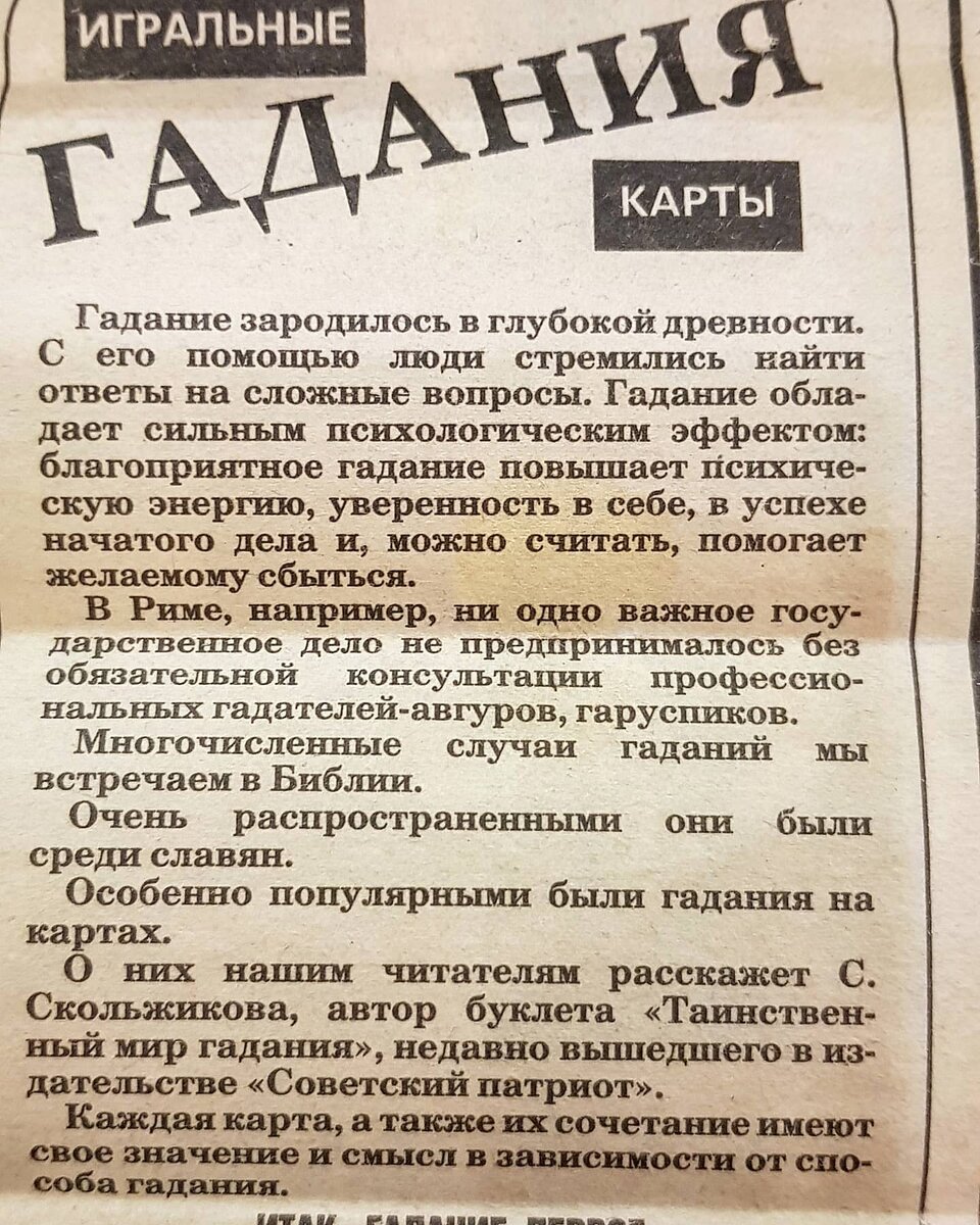 Нашла эту вырезку у дедушки. Думаю, осталась от бабушки: она любила карты.