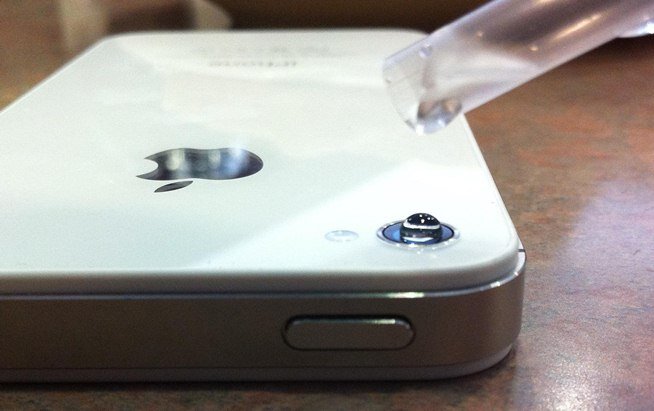 2)Затем положите ваш телефон экраном на стол, а на саму камеру (внимание!) добавьте капельку воды, чтобы получился эффект выпуклой линзы.(будьте аккуратнее с водой)