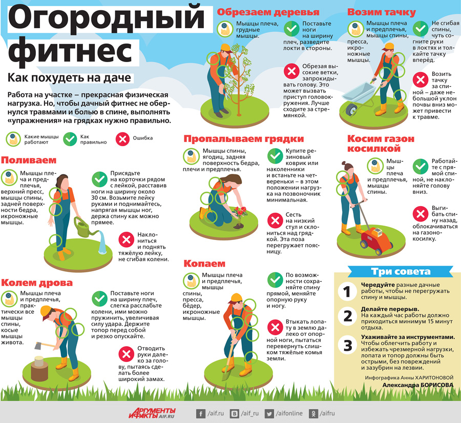 Работа на участке – прекрасная физическая нагрузка. Но, чтобы дачный фитнес не обернулся травмами и болью в спине, выполнять «упражнения» на грядках нужно правильно.