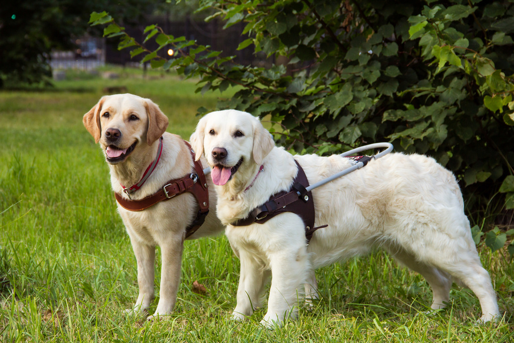 В школе подготовки собак-поводырей опытные инструкторы решают одновременно две задачи: не только обучают собак определенным командам, но и передают свои знания будущему хозяину собаки.