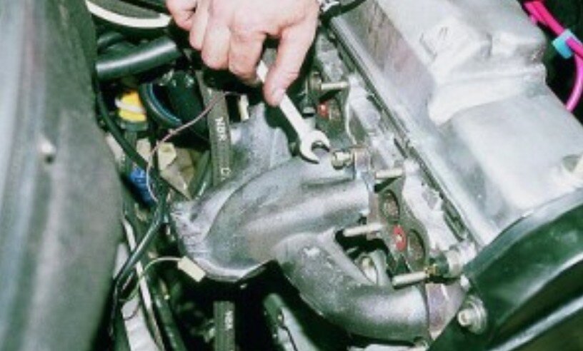 Выпускной соединяется с приемной трубой (она же «штаны»), далее идет катализатор, резонатор и глушитель. На старых автомобилях катализатор отсутствует.