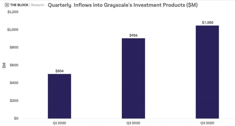 Команда инвестиционной компании Grayscale Investments отчиталась о рекордных показателях притока инвестиций в свои криптовалютные фонды в третьем квартале 2020 года. Информация об этом появилась в блоге организации.