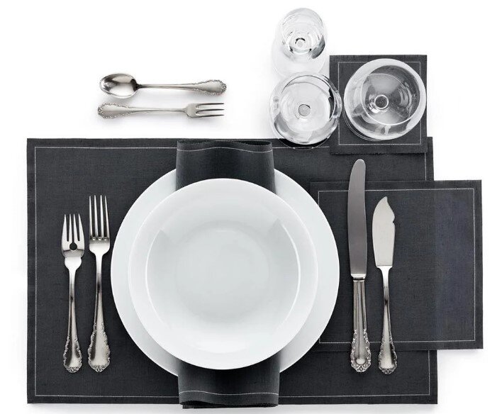 Следующим этапом является расстановка тарелок. Наверное, не нужно напоминать лишний раз, что вся посуда должна быть чистой. Тарелки ставят на стол сразу максимум 2-е. Это подставная тарелка и тарелка с блюдом. В некоторых случаях можно увидеть 3-и тарелки, но это только для определенных блюд, например, подача бульонницы с тарелкой.