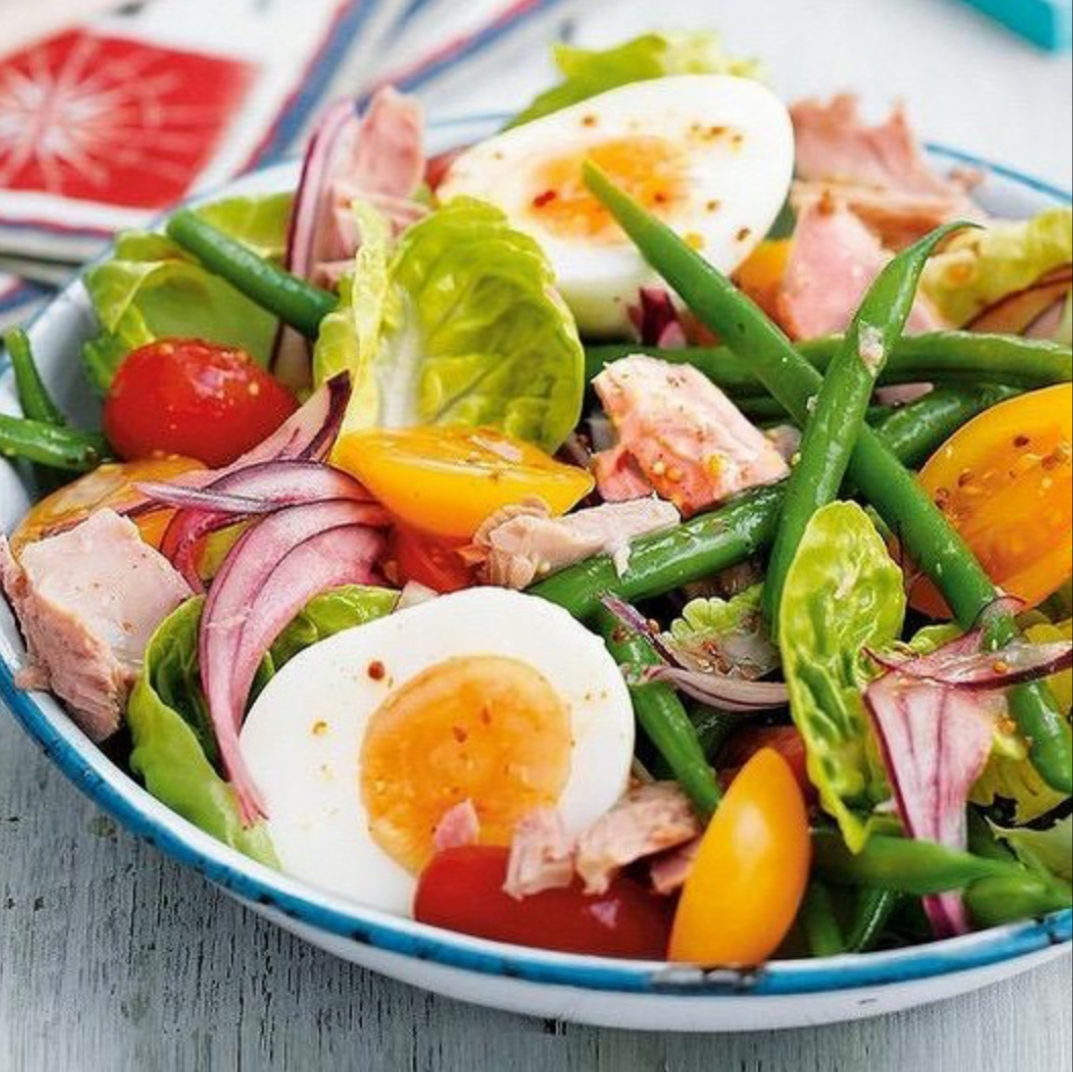 ☝В этот салат часто добавляют картофель, красную фасоль, анчоусы, оливки. Использовать эти ингридиенты или нет — решайте сами, в зависимости от Вашего плана питания.