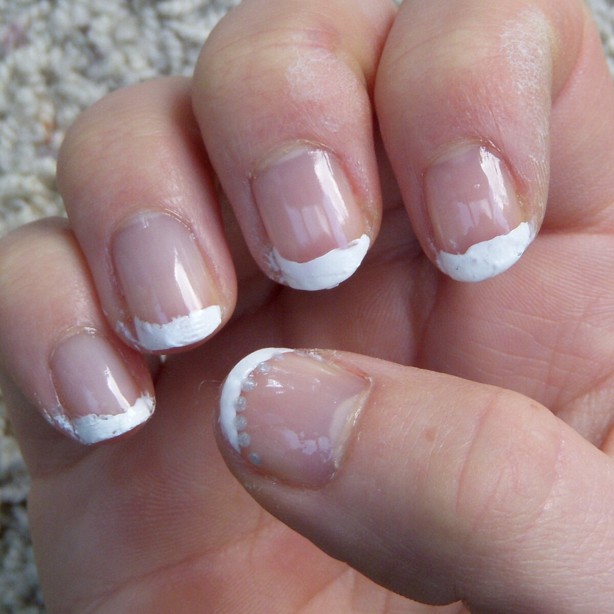 Кроме того, выделить кончики ногтей можно при помощи обычной канцелярской резинки. Просто натяните её вокруг пальца и нанесите белый лак. Это бюджетная альтернатива специальным виниловым трафаретам.