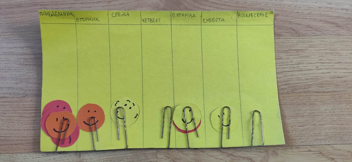Должна быть заполнена таблица хотя бы на 80%, чтоб ребенок получил денежку. Бывают и такие недели, что за все дни всего 1 хороший или плохой смайл. Тогда в понедельник ничего не даём и продолжаем копить дальше.