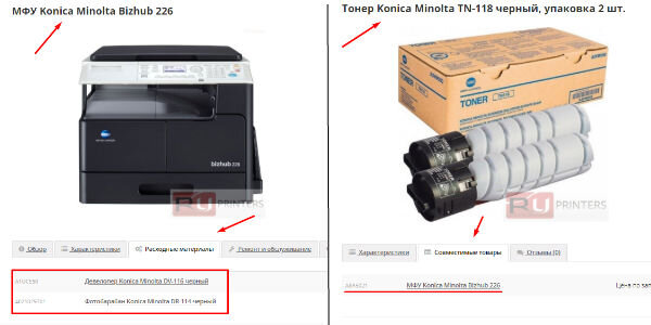 На сайте интернет-магазина RuPrinters можно забить название модели принтера или картриджа в поиске. В результате будет товар, в карточке которого будет указано совместимое устройство (в случае с расходниками) или расходные материалы (в случае с устройством) - это самый простой и быстрый способ купить оригинальные расходные материалы. Все ссылки активные и открываются в новой вкладке.