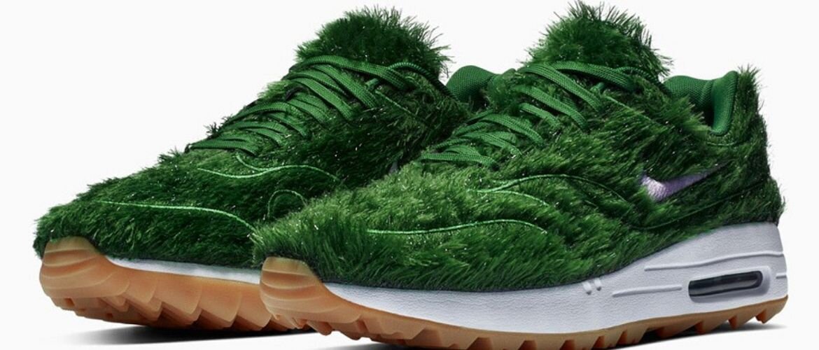 Nike собирается выпустить новую версию своих кроссовок Air Max 1 Golf, которая наверняка вызовет много шума, так как вдохновлена не чем иным, как полями для гольфа. Под зеленым дерновидным верхом кроссовка находится межподошва Zoom Air и резиновая подошва с резиновым покрытием для гольфа.