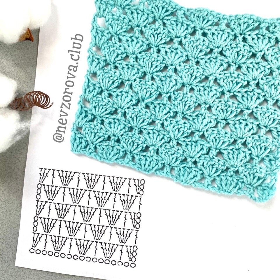Милые веерочки переплетаются и создают очень фактурный узор, который прекрасно впишется в любое изделие!