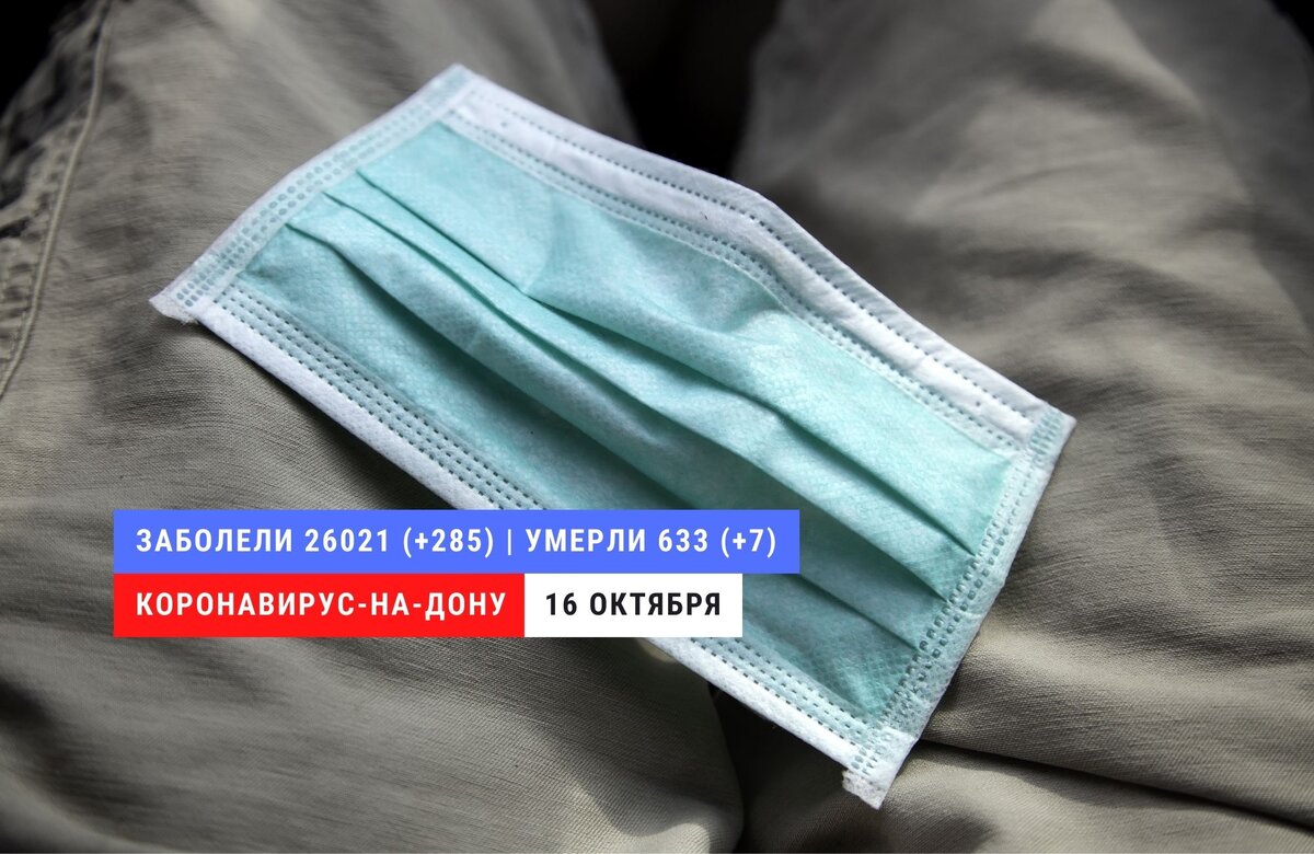 Все больше новых случаев COVID-19 регистрируют ежедневно в Ростовской области. За последние сутки тестирование выявило 285 новых больных. Семь человек по результатам вскрытия признаны умершими от коронавируса, 210 выписали после болезни.