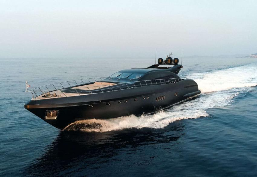 33,5-метровая моторная яхта с закрытым салоном Mangusta 108 Neoprene построена в 2002 году на верфи Mangusta в Италии. Агрессивный силуэт лодки с фирменным матовым черным цветом разработан студией Stefano Righini Design.