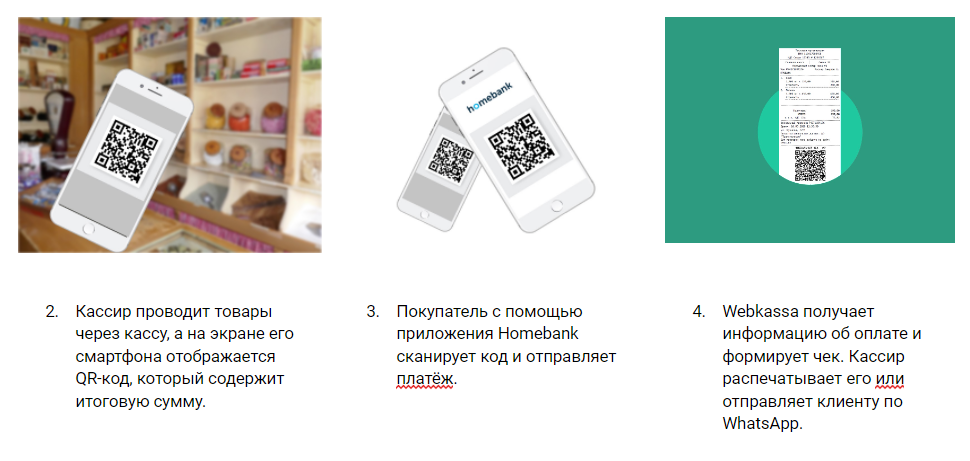 Кассир не вводит вручную сумму покупки, как на обычном POS-терминале. Сумма передается автоматически, после чего на экране кассира появляется QR-код. Клиенту остаётся его только отсканировать и оплатить покупку.