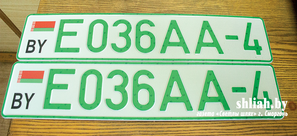 Зеленые номерные знаки появились и в МРЭО ГАИ Сморгонского РОВД. Начальник этого милицейского подразделения Александр Силевич показал необычный номерной знак и отметил, что пока никто еще не получил такой в Сморгонском, Островецком и Ошмянском районах, жители которых регистрируют свои транспортные средства в находящемся в нашем городе МРЭО.