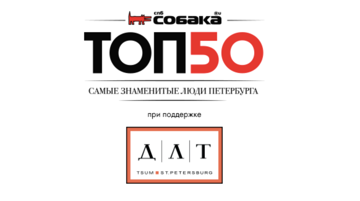 В 2020 году в очередной раз проходит премия "Топ-50. Самые знаменитые люди Петербурга" по версии городского журнала Собака.ru. Художники и бизнесмены, врачи и дизайнеры, экологи и музыканты, ученые и актеры, меценаты и писатели, социальные активисты и режиссеры, блогеры и спортсмены - каждый год журнал находит и чествует тех петербуржцев, кто сделал большой шаг или открытие в своей области и изменил Петербург к лучшему.