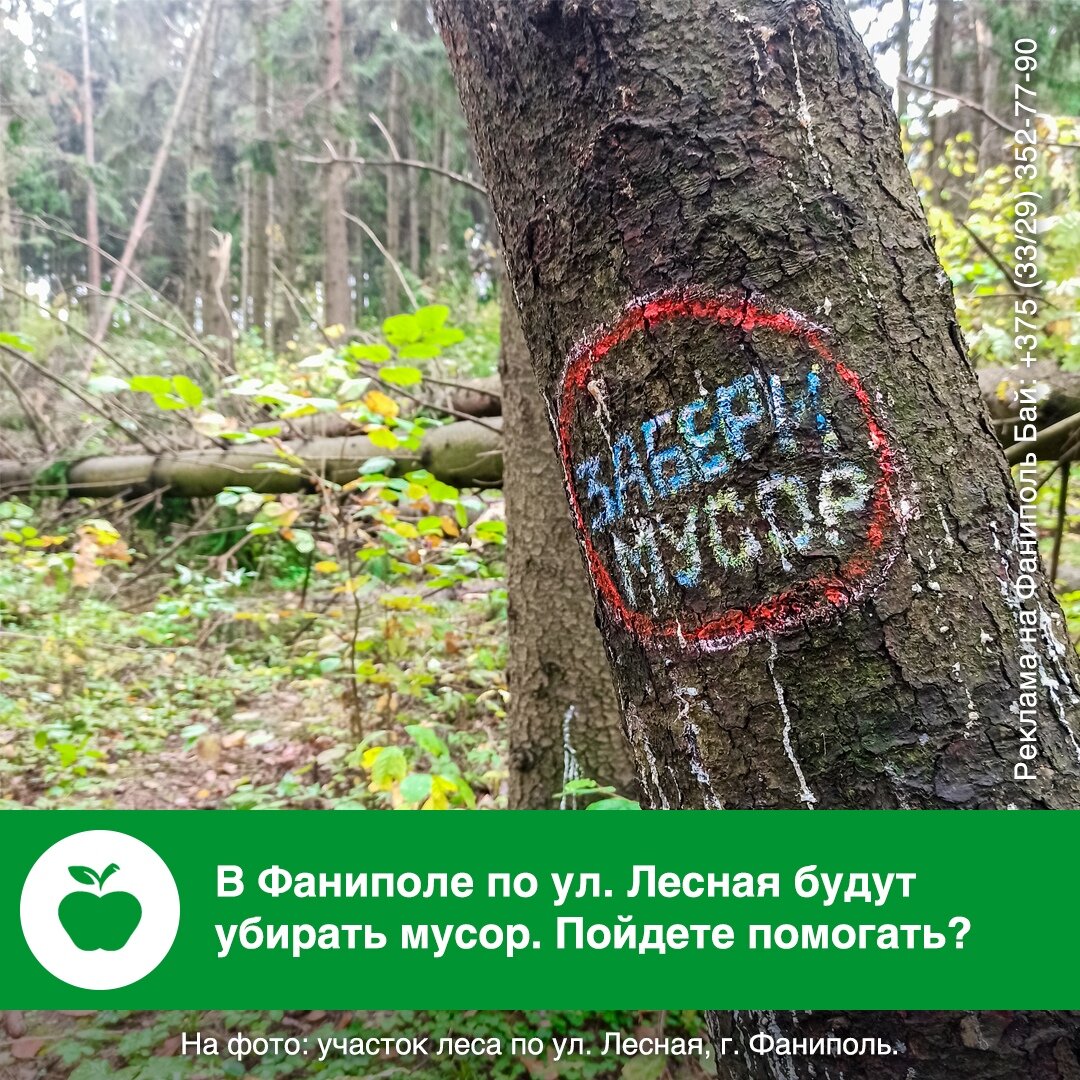 17 октября в Фаниполе в лесу по ул. Лесная и ул. Бровки сотрудники Станьковского лесничества Государственного лесохозяйственного учреждения "Минский лесхоз" будут убирать мусор и поваленные деревья в рамках акции "Чистый лес".