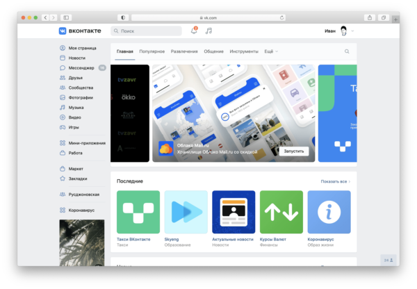 «ВКонтакте» запустила каталог мини-приложений в полной версии сайта — раньше он был доступен для просмотра только через мобильную версию и приложения «ВКонтакте».