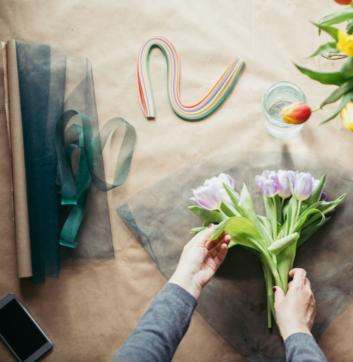 В качестве примера предлагаю взять за основу — аранжировку нежного цвета и различные варианты упаковки.
