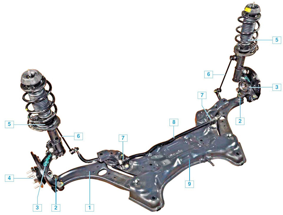 Независимая подвеска отличается от зависимой тем, что несущей основой для неё является подрамник, который крепится к кузову при помощи пластичных резинометаллических опор, так называемых: сейлентблоков.