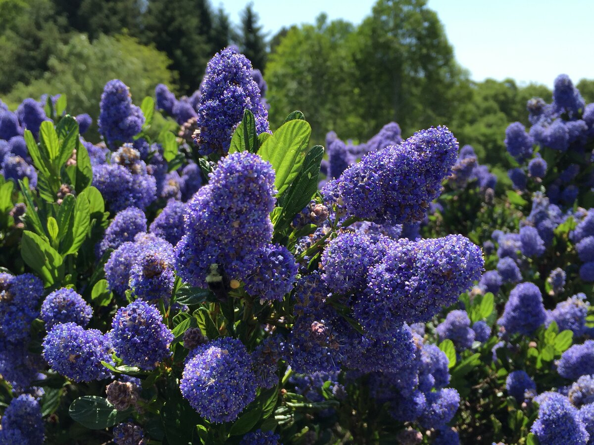 Цеанотус-калифорнийская сирень, кустарник благодаря густым кистям которого и голубым цветкам различных оттенков, от бледно-синего, до насыщенного индиго, розового и белого.