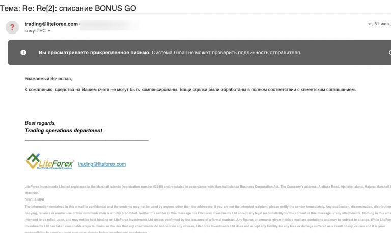 В приложении предоставляю переписку со службой поддержки Liteforex.