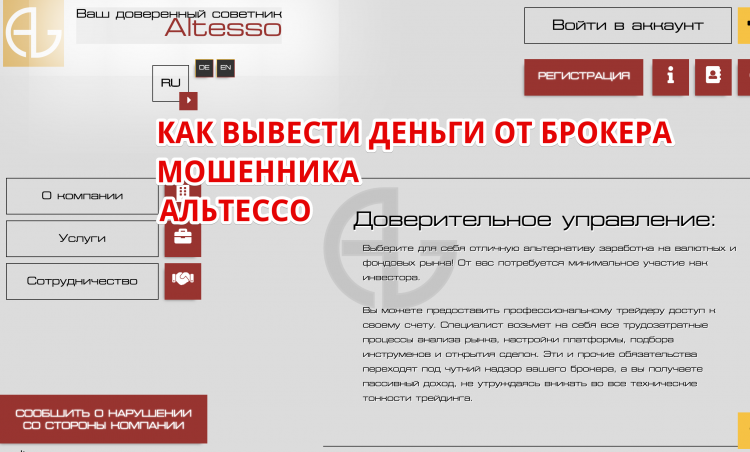 Как вывести деньги от брокера Altesso. Полное руководство для трейдеров, которые потерями деньги в Альтессо.