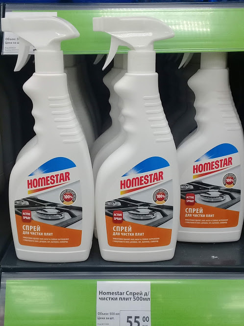Знакомая мне тут посоветовала купить спрей для чистки плиты Homestar.