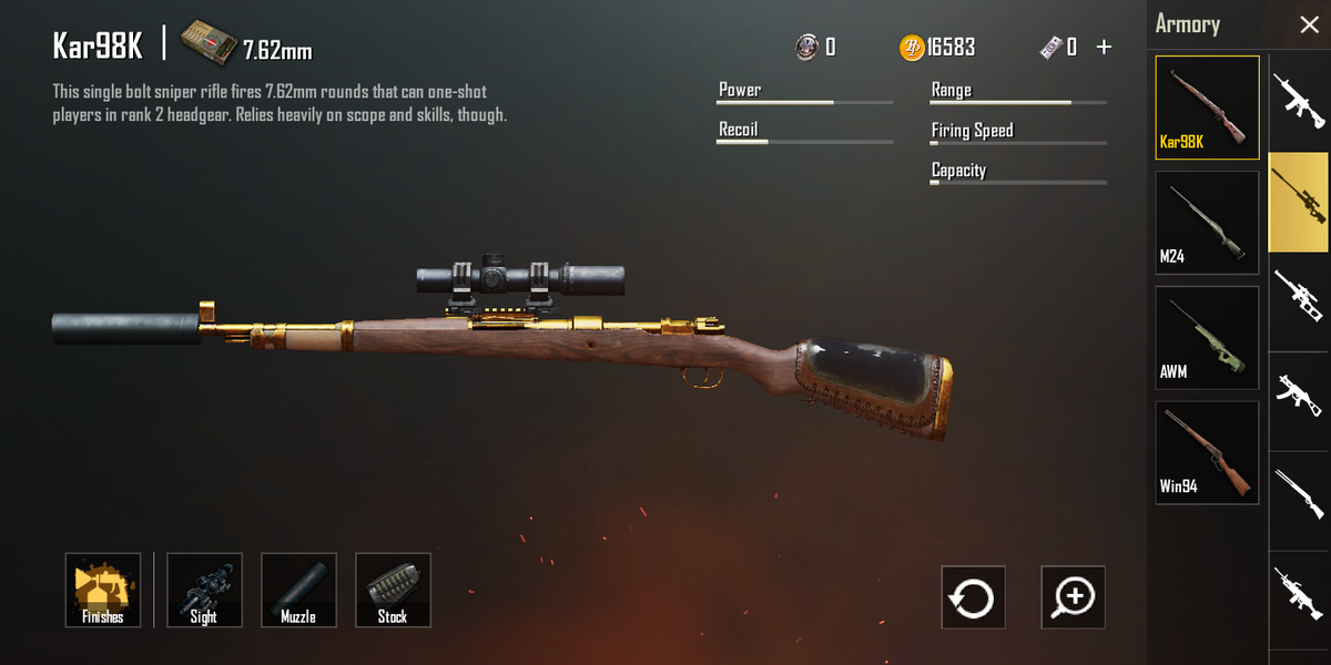AWM - лучшая снайперская винтовка. Выпадает только из Аирдропа. Имеет колоссальный урон, но долгую перезарядку. Добавим к этому отдачу, патроны, падающие так же из Аирдропа, и вытекает из этого его лишь, увы, четвёртое место. Хотя на дальнюю дистанцию - самое лучшее оружие.