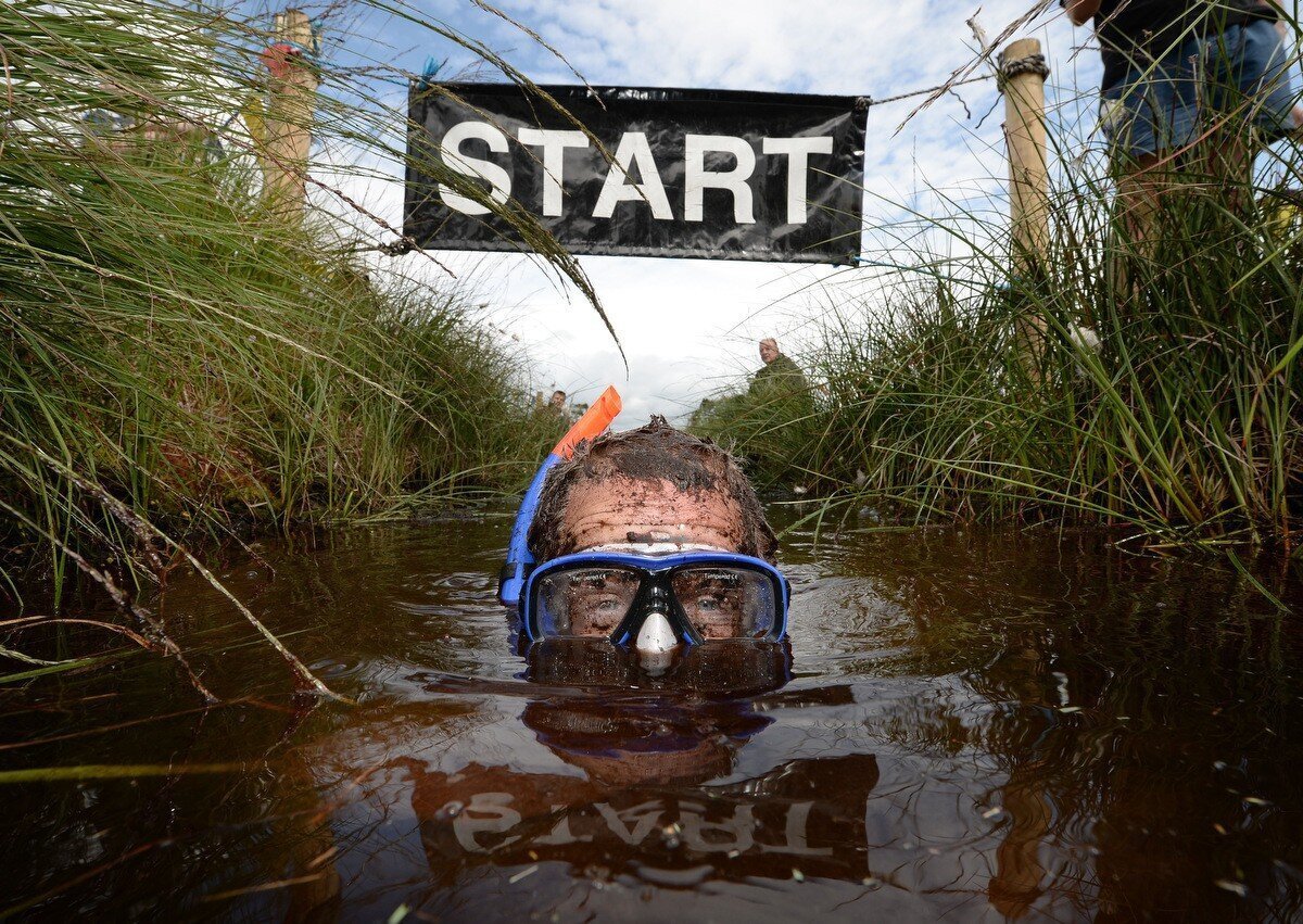 Этот своеобразный вид спорта зародился в Англии, как гласит легенда из-за спора двух мужчин. Он состоит из нескольких частей, "классический сноркелинг" и "Всемирный Триатлон по болотному сноркелингу " Главная интрига данного состязания, состоит в том, чтобы проплыть по канаве наполненной грязью, не используя рук. Как же вы спросите тогда плыть ? На спортсменов надевают ласты с помощью которых и удается преодолевать дистанцию. По мимо ласт, главное условие соревнований включает в себя одно специфическое требование, участникам запрещено поднимать голову, а дышать только через трубку, которую по правилам выдают вначале состязания. Второй же вариант соревнований включает в себя, всё вышесказанное, но при этом добавляя бег и езду по горным ухабам на велосипеде. Самая невероятна и продолжительная гонка в данном виде спорта длилась два с половиной часа, войдя в книгу рекордов Гиннесса.