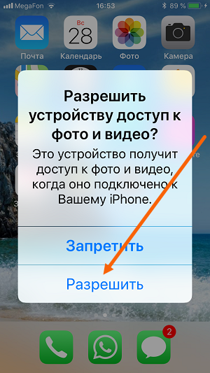 2. На дисплее Айфона открылось окно, в котором необходимо разрешить доступ к