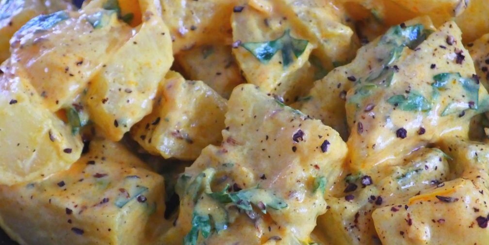 Привычное блюдо в новом интересном образе. Отварной картофель в соусе, прекрасно дополняющим популярный овощ. Нежное сочетание основной заправки, самодостаточный вкус общей ароматной композиции — повод заново влюбится в земляное яблоко.