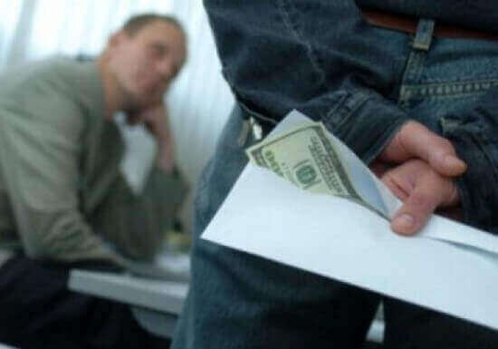 Получение взятки может быть сопряжено с ее вымогательством (п. «в» ч. 4 ст. 290 УК РФ), которое выражается, либо в предъявлении прямого требования дать взятку, либо поставлении взяткодателя в такие условия, при которых он вынужден дать взятку с целью предотвращения вредных последствий для его правоохраняемых интересов.