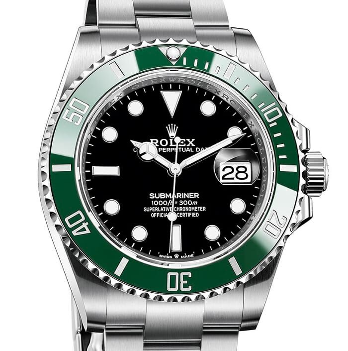 - 126610LV – стальной корпус, безель с керамическим кольцом зеленого цвета, чёрный циферблат, стальной браслет, цена 9 050 Евро;