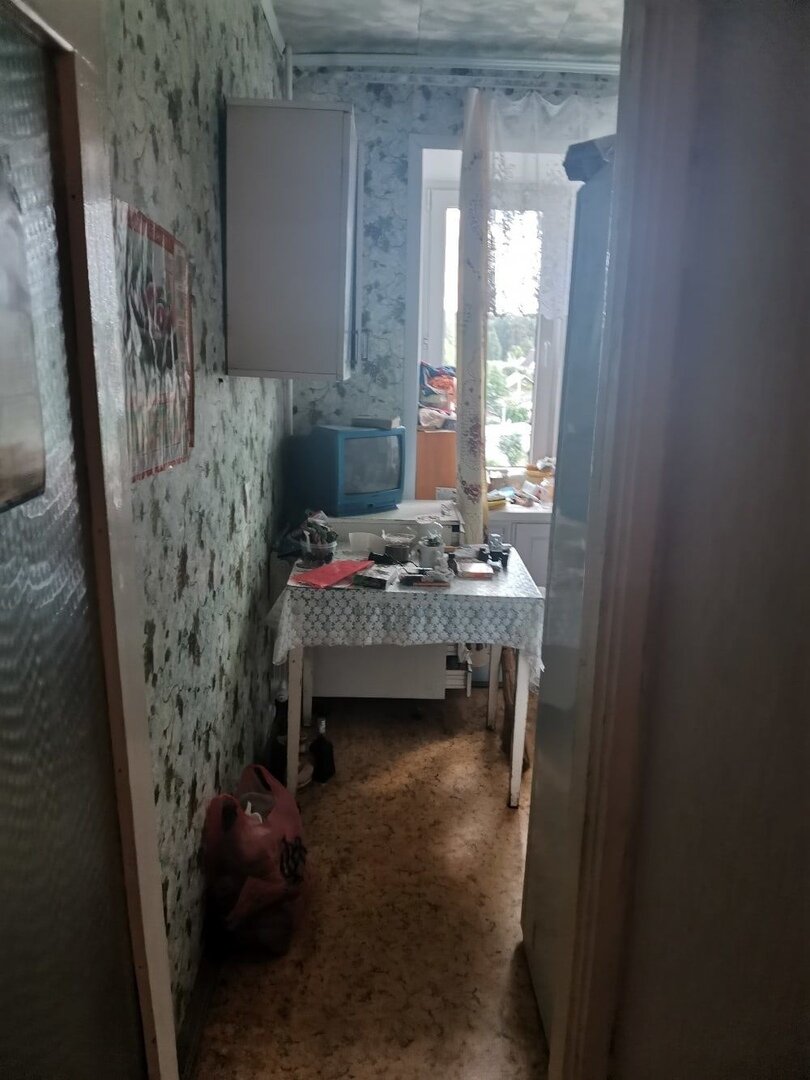 Тумбу, на которой стоял телевизор, убрали и перенесли его на подоконник. Столик сдвинули ближе к окну, чтобы освободить пространство на входе в кухню.