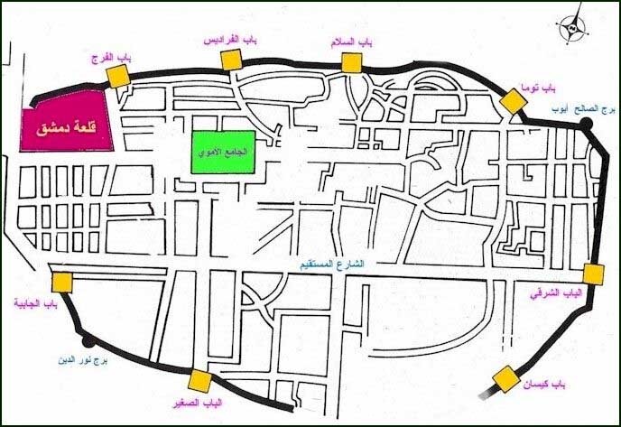 Дамаск - самый старый населенный город на земле, который не был отрезан от жизни, и с самого начала своей истории он был организован, его улицы перпендикулярны, окружены стенами и дверями, существование которых было связано с безопасностью людей, поскольку это было мощным средством защиты для отражения агрессоров.