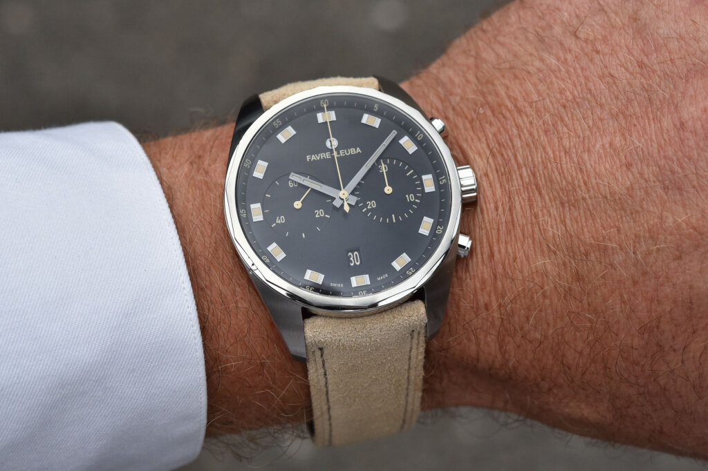 На циферблате, защищенном сапфировым стеклом с антибликовым покрытием, расположены характерные граненые индексы и стрелки, вдохновленные моделями Favre-Leuba 1960-х и 1970-х годов. Автоматический механизм хронографа разработан на базе ETA 7753, который, в свою очередь, является производным от проверенного временем 7750. ETA 7753 с рычажным механизмом хронографа, с частотой 28 800 полуколебаний в час и 48-часовым запасом хода. Дату можно быстро установить с помощью кнопки в положении «10 часов».
