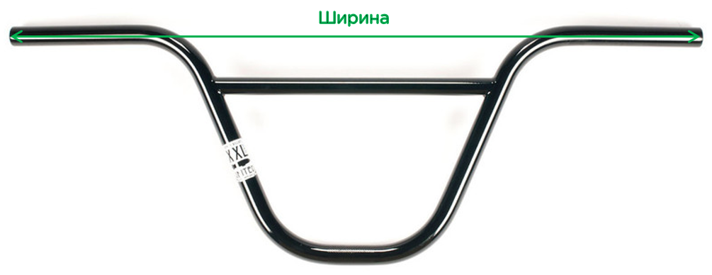 Ширина - это расстояние между концами руля без барендов. В BMX, в отличии от МТБ, измеряется в дюймах. Как и высота, влияет на контроль велосипеда и удобство катания. И так же, как и высота, ширина руля менялась из года в год. Так, в 2002-2006 годах, считалось крутым кататься с максимально коротким рулем (рули упиливались чуть ли не до кроссбара), поскольку это облегчало барспины (короткий руль меньше мешается при вращении), затем резко появилась мода на экстраширокие рули (29” - 30”), ввиду большего контроля и стабильности в воздухе.Углы загиба Upsweep (апсвип, загиб вверх) и Backsweep (загиб назад, “на себя”), как и ширина с высотой влияют на комфорт катания. Если при смене руля, вы чувствуете себя как-то странно, то дело именно в углах. Они формируют итоговое положение руки на руле. Обычный угол апсвипа в BMX 1 градус, но встречаются углы и до 4. Угол бэксвипа варьируется в диапазоне 6º-12º.