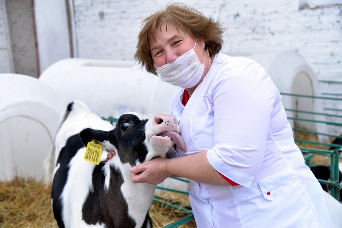 Сейчас в телятнике порядка 80 животных, которые через год станут давать молоко. За ними ухаживают телятницы. Это сотрудники фермы, которые и отёл принимают, и за только родившими мамочками ухаживают, и кормят малышей.