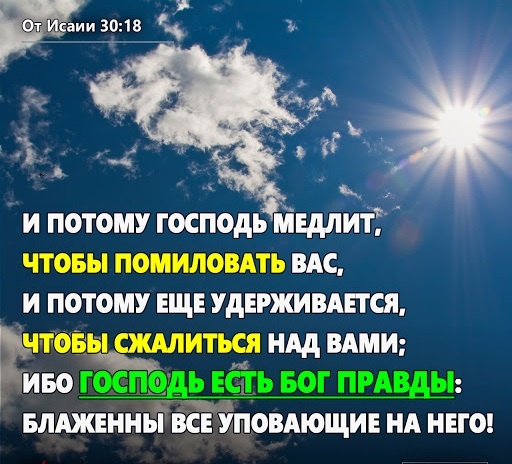 «И потому Господь медлит, чтобы помиловать вас, и потому ещё удерживается, чтобы сжалиться над вами; ибо Господь есть Бог правды: блаженны все уповающие на Него!» (30:18)