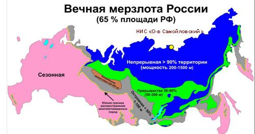 - Не так давно подтвердилась информация о том, что вечная мерзлота начинает "деградировать" или попросту оттаивать из-за роста средней температуры. От 60 % до 65 % территории России — районы вечной мерзлоты. Наиболее широко она распространена в Восточной Сибири и Забайкалье. Хотя эти районы далеко не самые населённые, тем не менее там есть достаточно большие города и важные объекты инфраструктуры. Ну, подумаете вы, тает и тает, и хорошо даже, жить станет теплее и лучше. И да и нет. В какой-то невероятно далёкой перспективе - может быть. Но ближайшее время - это обернётся огромными проблемами северянам и сибирякам и огромными расходами для правительства. По предварительным оценкам этот процесс к концу 21 века обернётся катострофическими расходами - вплоть до 43 триллионов долларов. Процесс этот, ясное дело не быстрый - в некоторых регионах глубина мерзлоты составляет более 1000 метров, но и не настолько медленный. Так почему же это плохо? Всё довольно просто - дело в том, что инфраструктура в городах, расположенных на территории вечной мерзлоты расчитана под неё. Как следует из названия "Вечная мерзлота" - не расчитывалось, что она будет таять - это беспрецедентный процесс. В итоге здания, трубопроводы, канализация, линии электропередач, дороги - в общем, всё строилось под мерзлоту.
