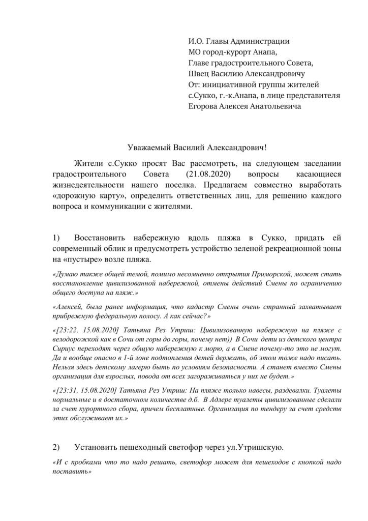 Обращение в градсовет г. Анапа