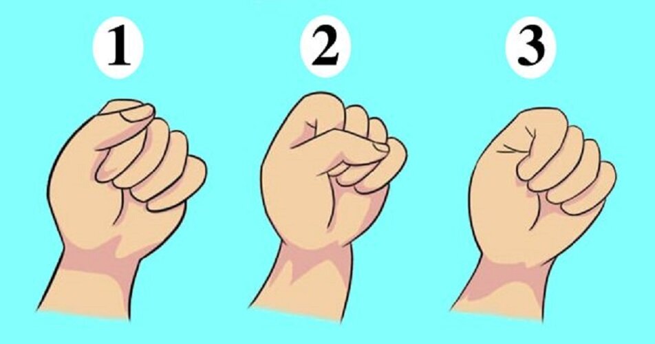 Уделите минутку свободного времени и сожмите кулак. Посмотрите на свой кулак и сравните положение большого пальца на нем, с вариантами на рисунках, а затем прочтите ниже, что это говорит о вашей личности.