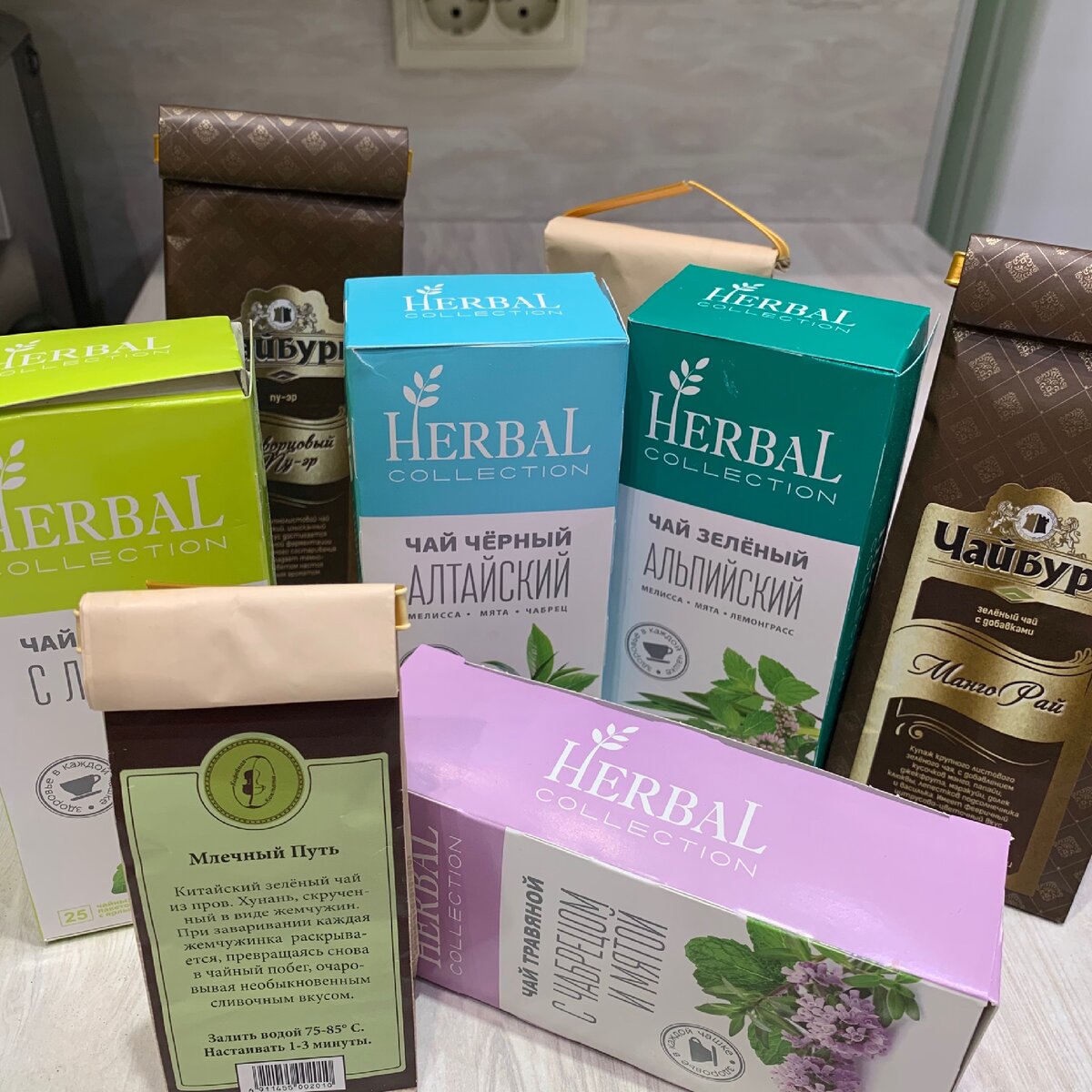 Первым делом в ход пошли пакетезированные чаи из «Монетки» с разными вкусами в яркой упаковке.