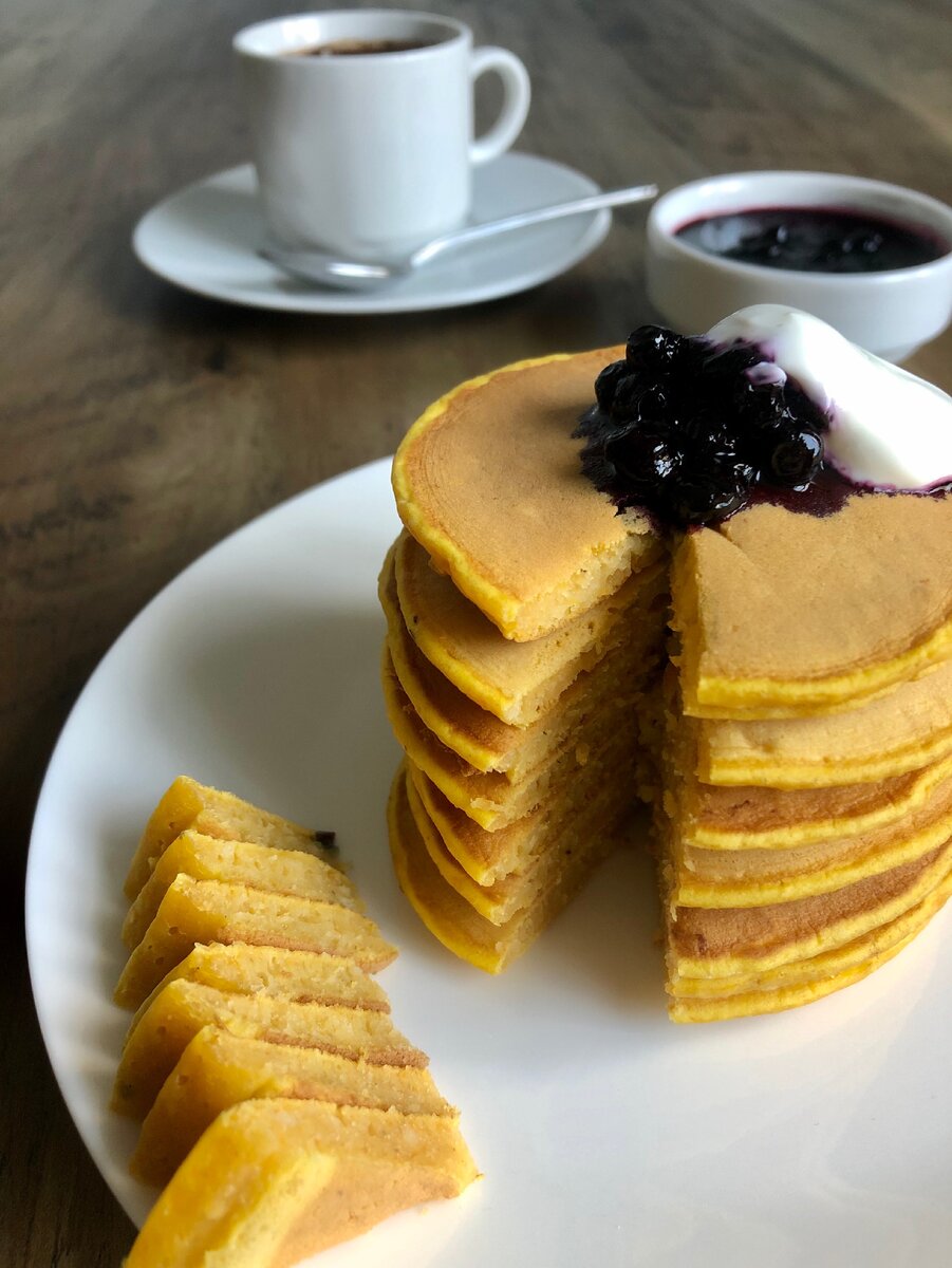 Сезон больших, сладких и ароматных красавец открыт! Мне досталась малышка весом пару килограмм сорта баттернат. Для сладкой выпечки этот сорт подходит как нельзя лучше: тонкая кожица, нотки манго во вкусе и аромате делает своё дело - никому не устоять. Предлагаю подойти к ней с солнечной стороны и сделать яркие панкейки😉
