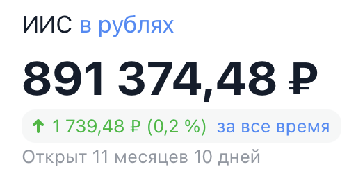 На падении рынка в марте я добавил на ИИС еще 400 тысяч и с них я должен получить за 9 месяцев исходя из доходности 12% еще 9% годовых. В деньгах это 36 тысяч рублей.