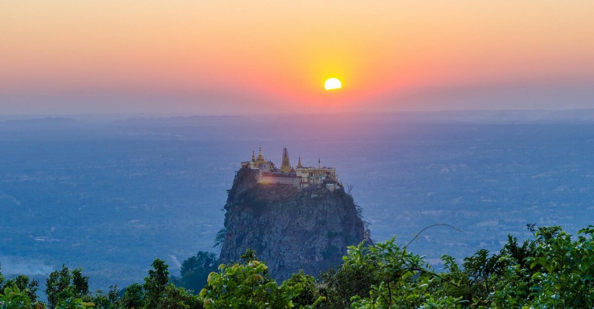 Мало того, что храм сам находится на вершине вулкана, высота которого достигает 737 метров, так и сами окрестности очень красивы. Неподалёку находится ещё одна гора под названием Попа (Mount Popa). Высота этой горы составляет 1518 метров, и эта вершина также является некогда потухшим вулканом!